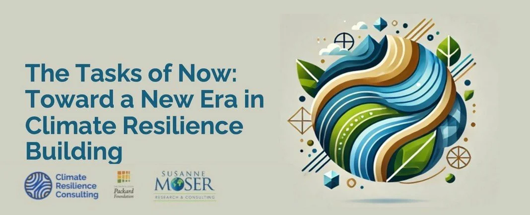In fall 2024, Climate Resilience Consulting and Dr. Susanne Moser Research and Consulting collaborated with the David and Lucile Packard Foundation on a report on the state of U.S. climate adaptation and a strategic framework to guide philanthropic investments in scaling climate resilience efforts. The Climate Resilience Scan, “The Tasks of Now: Toward a New Era in Climate Resilience Building” draws on research, interviews, and expert insights, to outline transformative actions and principles for philanthropy to drive impactful, long-term resilience-building initiatives through targeted funding and collaboration.